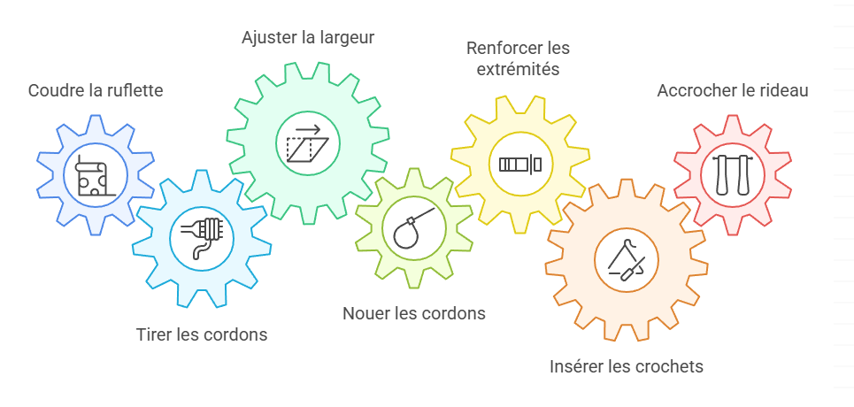 Si vous travaillez avec des tissus lourds comme le velours ou les doubles-rideaux thermiques, optez pour une ruflette renforcée et des crochets plus robustes. L’expérience nous a montré que la qualité des accessoires influence directement la durabilité de l’installation.