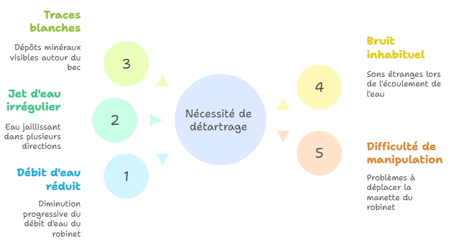 Vous devriez envisager de détartrer votre mitigeur dès les premiers signes d’entartrage. Ces signes sont facilement identifiables :