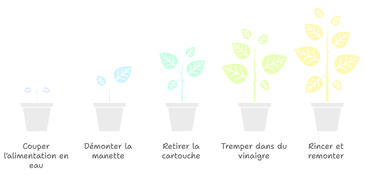 Un détartrage régulier, idéalement tous les trois mois dans les zones à eau très calcaire, permet d’éviter que le problème ne s’aggrave. Dans notre atelier, nous recommandons cette fréquence car l’entretien préventif reste toujours moins coûteux qu’un remplacement complet.