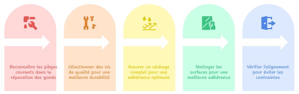 Au fil de nos interventions, nous avons constaté que certaines erreurs compromettent systématiquement la durabilité des réparations de gonds. Ces pièges, faciles à éviter avec les bonnes informations, font souvent la différence entre une réparation qui tient quelques semaines et une qui dure des années.